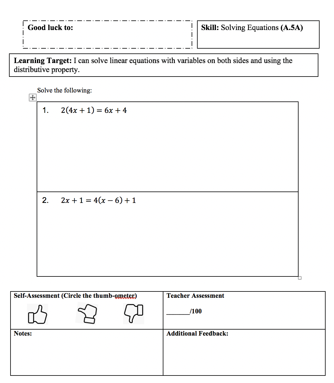 I recently tried the first instructional strategy at a high school in connection with learning targets and success criteria. I have been wanting to find more ways to bring the planning and crafting of these from the teachers into the ownership of students. By using this strategy, we found that it helped turn a typical practice day into even more formative feedback for her and her students, and together we came up with the name, “Numbers to Success.” For this day, the teacher used numbers to label her success criteria instead of check boxes. During practice, when a student had a question, we asked them to not just raise their hand for help, but to point out what numbered step they were struggling on. (Some students said the number and some signaled the numbers on their hand like the picture.) Identifying this gave the conversation a starting point and much more specificity instead of just, “I don’t get it” or “I’m confused.” One student I worked with told me, “yeah, I get the first and last step, but I’m stuck on 2.” This was true evidence of growth mindset because using this strategy was validating to the student that he knew two out of three steps and the missing step became our focus as we worked together. I even got a high-five after he got all three steps on his own!